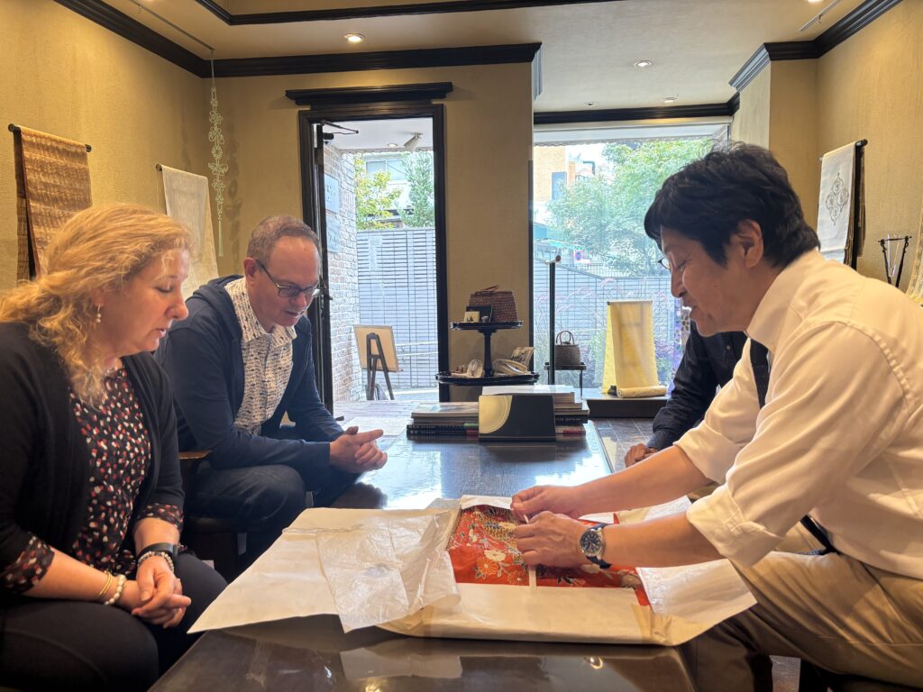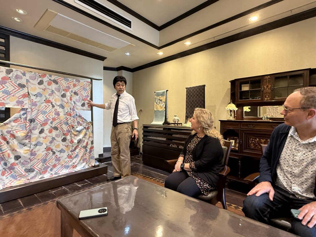 Mr. Mako Isonishi, the shop owner, kindly explained about the craftsmanship and cultural significance of kimono.