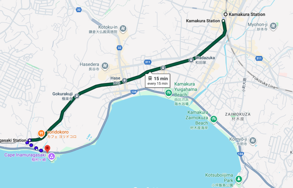 Tokyo → Kamakura → Enoden Line → Inamuragasaki → Sunset Fuji view → Return to Tokyo