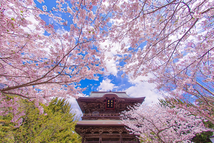 Cherry blossoms bloom throughout the temple grounds, and visitors can also enjoy views of the Kamakura coastline.